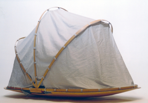 zeltartige Überdachung über sich und kann leicht wippen.